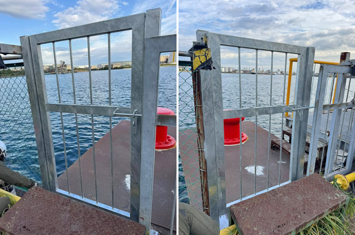 三浦市三崎港の船着場に侵入防止柵を製作、取り付けいたしました。 |